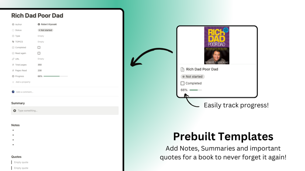Input Summary, Notes and Quotes for books so you never lose any important information!